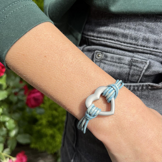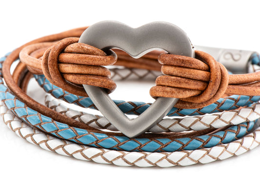 Blue, White and Brown Heart Urn Bracelet for Ashes
