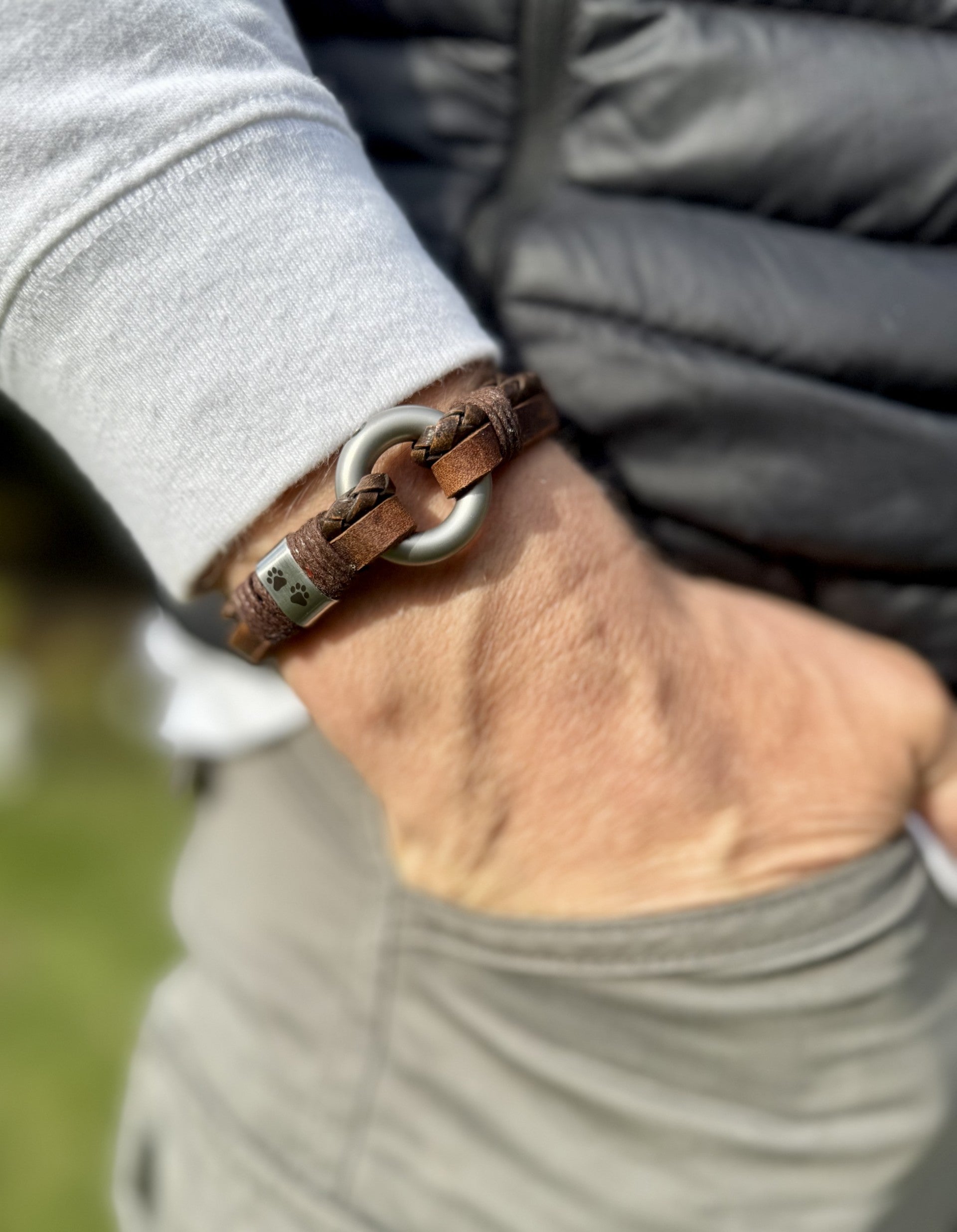 Each of our Leather Memorial Urn Bracelets is lovingly handcrafted in our home studio by our close-knit family. My enthusiastic young family, brother and even our latest recruit….Daphne🐾 have an input!