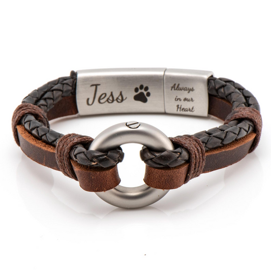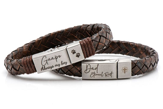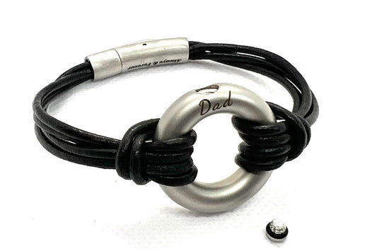 Engraved Leather Memorial Bracelet Keepsake for Ashes, Urn Bracelet