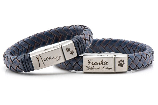 Custom Blue Leather Ashes Bracelet Memorial Keepsake Gift for Men