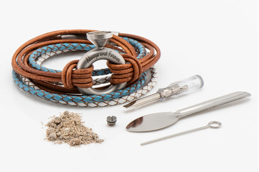 Blue, White and Brown Heart Urn Bracelet for Ashes
