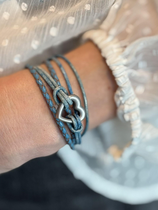 Jeans Blue braided Leather Urn Clasp Bracelet