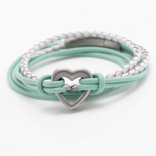 Customisable Green & White Braided Heart Bracelet - Pet Memorial Ashes Urn Jewellery Sympathy Gift