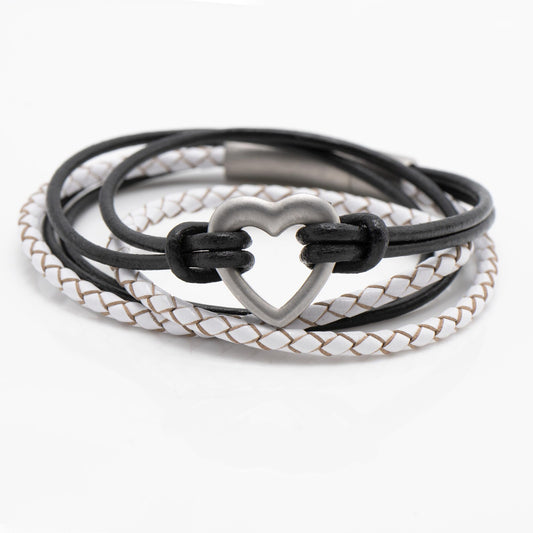Black and White Custom Pet Memorial Heart Wrap Bracelet - Ashes Urn Jewellery Sympathy Gift